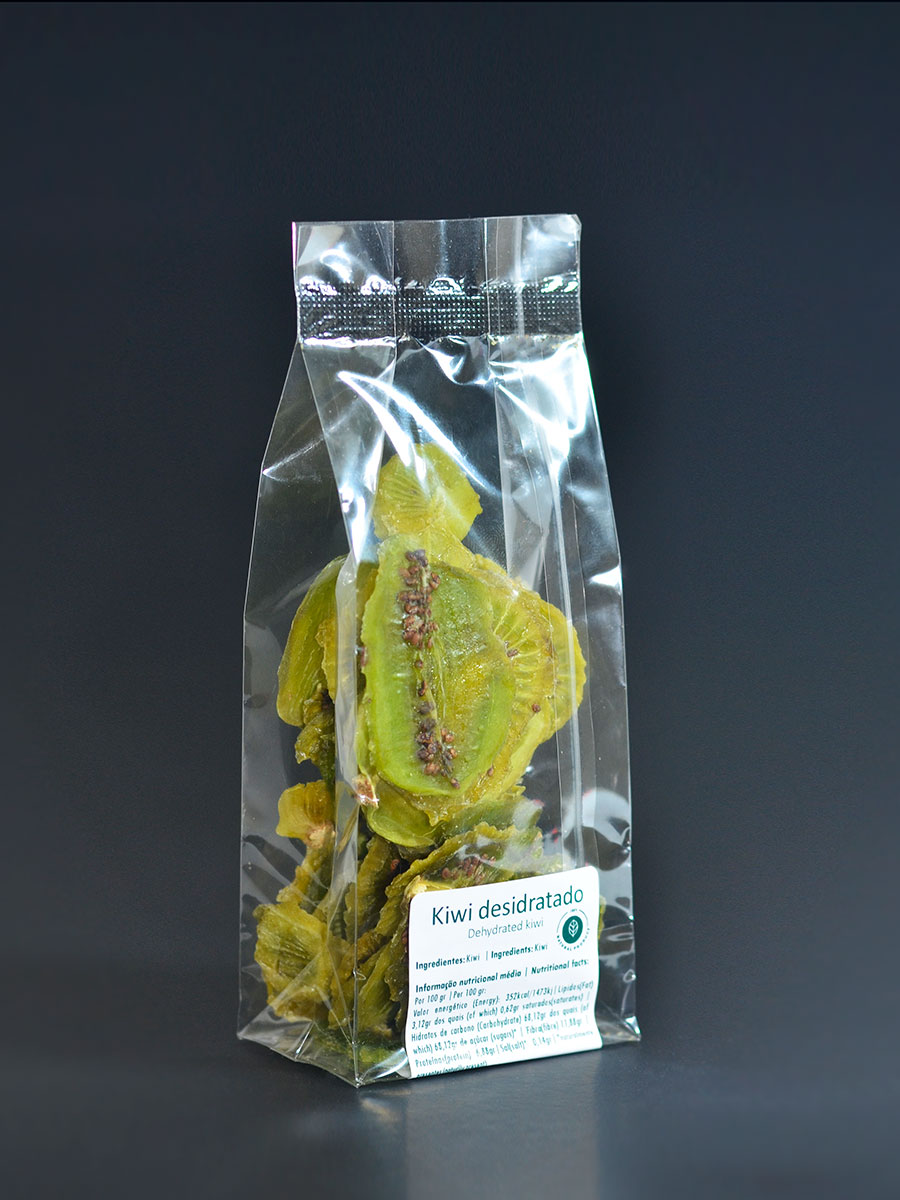 Este novo produto, saudável e 100% natural, é elaborado a partir de kiwi fresco (um fruto com elevado valor nutricional), submetido a um processo de desidratação totalmente natural e isento de quaisquer aditivos químicos (corantes ou conservantes), mantendo toda a sua riqueza nutricional. Uma embalagem de 50 g de kiwi desidratado corresponde aproximadamente a 1 kg de kiwi fresco.