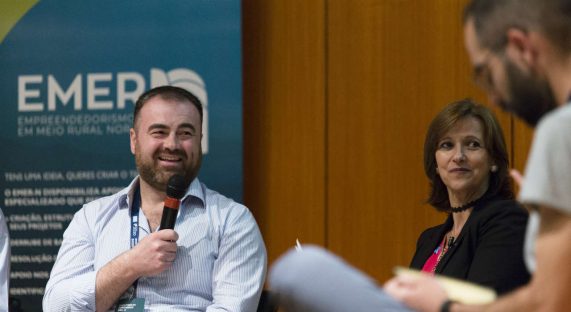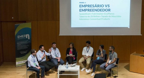 No 1.º painel – Empresário vs Empreendedor – tivemos a participação da Spawnfoam, Fabrimatex, Ecoplanos, Taberna do Zé Relhas, Tapado do Mourinho e Adoramus Conventual Products. Este último é um empreendedor das Terras do Sousa, cuja ideia de negócio está associada ao comércio de produtos conventuais, ou seja, que são produzidos nos conventos nacionais, tais como doces, terços, bolachas, arte sacra. Procurou o EMER-N para encontrar parceiros para a comercialização, na questão da rotulagem, na elaboração de um plano de negócios para abertura de uma loja, na obtenção de incentivos financeiros e apoio na obtenção de crédito bancário.