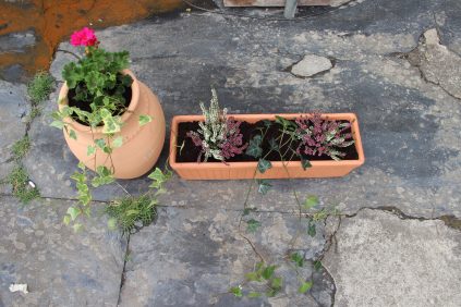 De tarde, plantaram-se trepadeiras e preparam-se os vasos que foram colocados ao longo da aldeia. No final foi feito um jardim vertical.