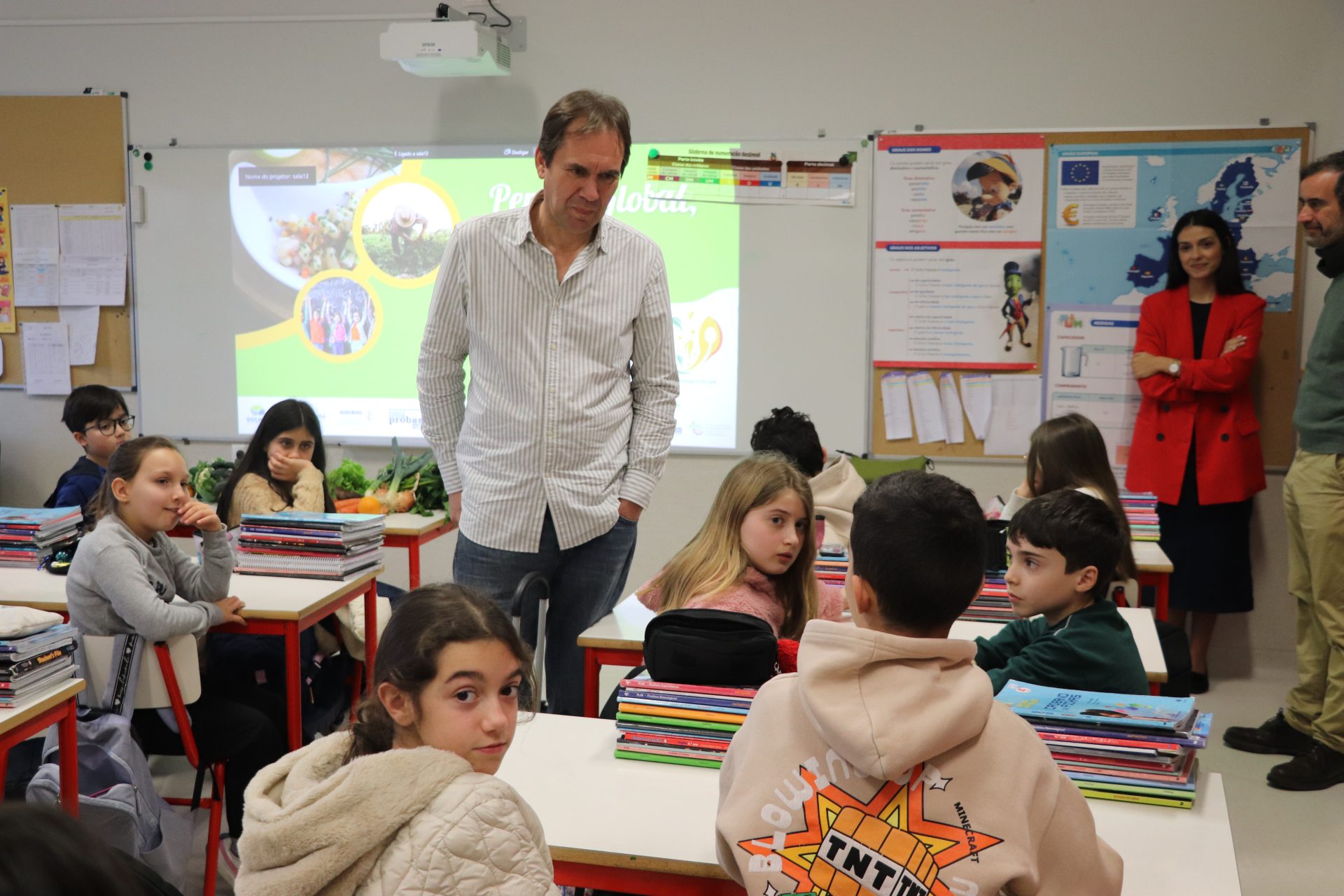A tarde também foi marcada pela encenação da peça de teatro “Às duas por três: Na terra dos sabores”, interpretada pelo Teatro S. Vincente. Os alunos acompanharam as aventuras de Lara e o seu amigo Tico pela encantadora Terra dos Sabores, onde aprenderam sobre os benefícios da alimentação local e sustentável de forma divertida e educativa.