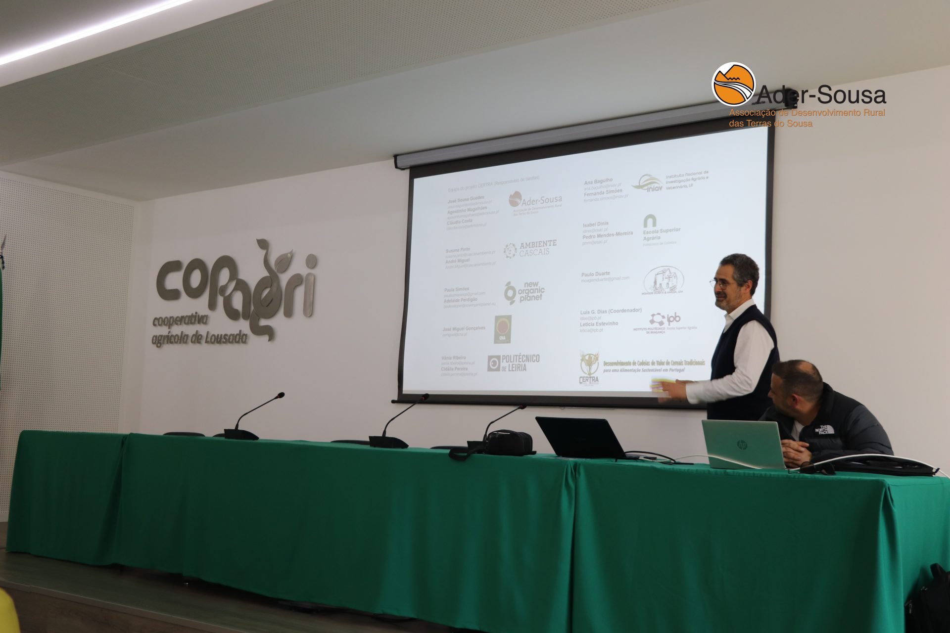 No âmbito da apresentação do Programa VASO, foram apreentados os projetos CERTRA e LIVESEEDING. O Prof. Pedro Mendes Moreira, da Escola Superior Agrária de Coimbra (ESAC -IPC ), teve oportunidade de delinear os objetivos, desafios e metas dos projetos supracitados, especialmente do projeto CERTRA, que tem forte ligação à região do Vale do Sousa, uma vez que está a ser desevolvido com a cooperação dos produtores de milho tradicional, dessa região, especialmente de Lousada e Felgueiras. “Felgueiras e Lousada, são os concelhos que têm maior produção de milhos regionais”, referiu Engº José Sousa Guedes, Coordenador da ADER-SOUSA.