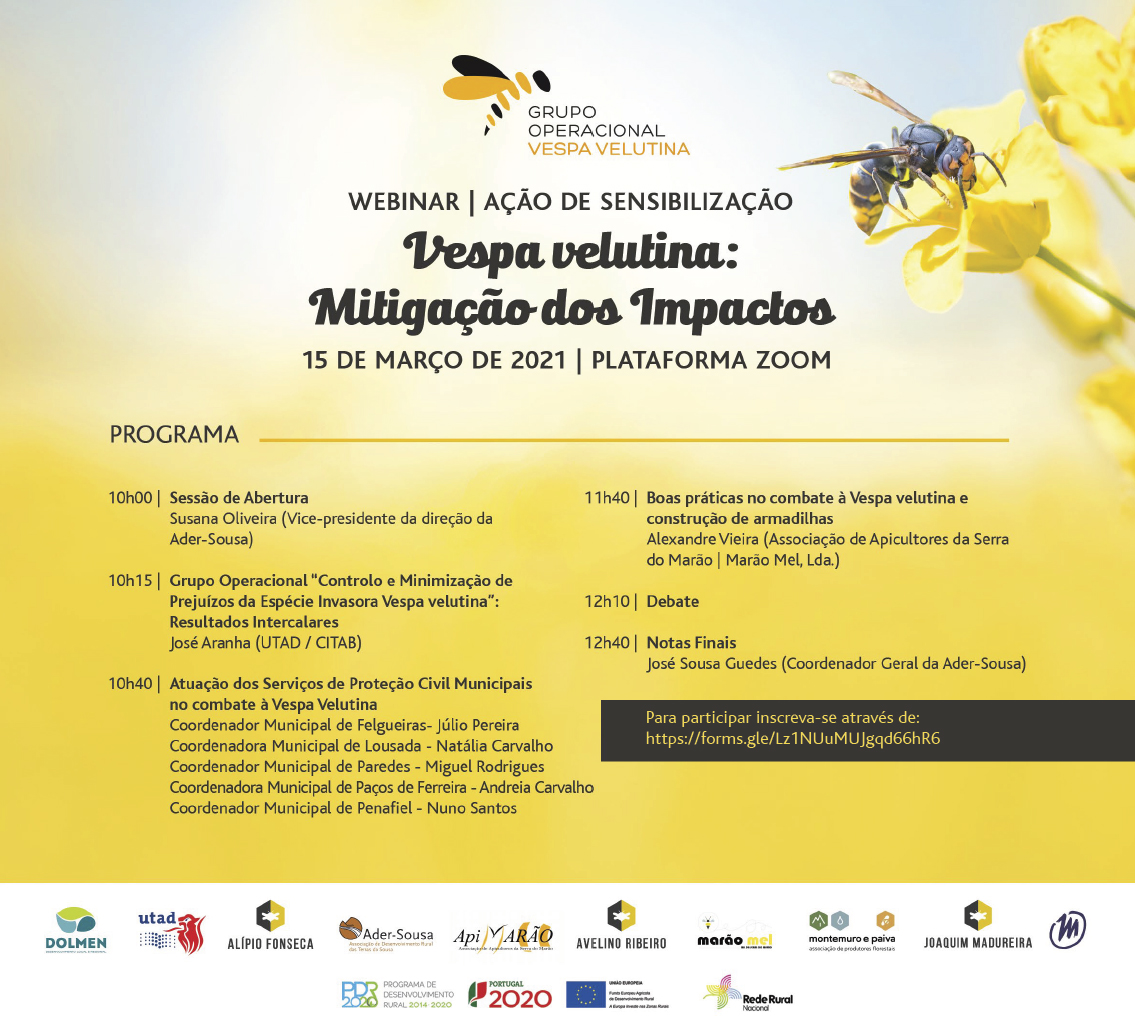 A Ader-Sousa promove a Ação de Sensibilização “Vespa Velutina: mitigação dos impactos” (em formato WEBINAR), no próximo dia 15 de março entre as 10h00 e as 12h30.
